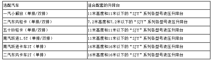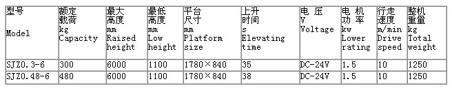 ★電瓶車車載式液壓升降臺技術參數: